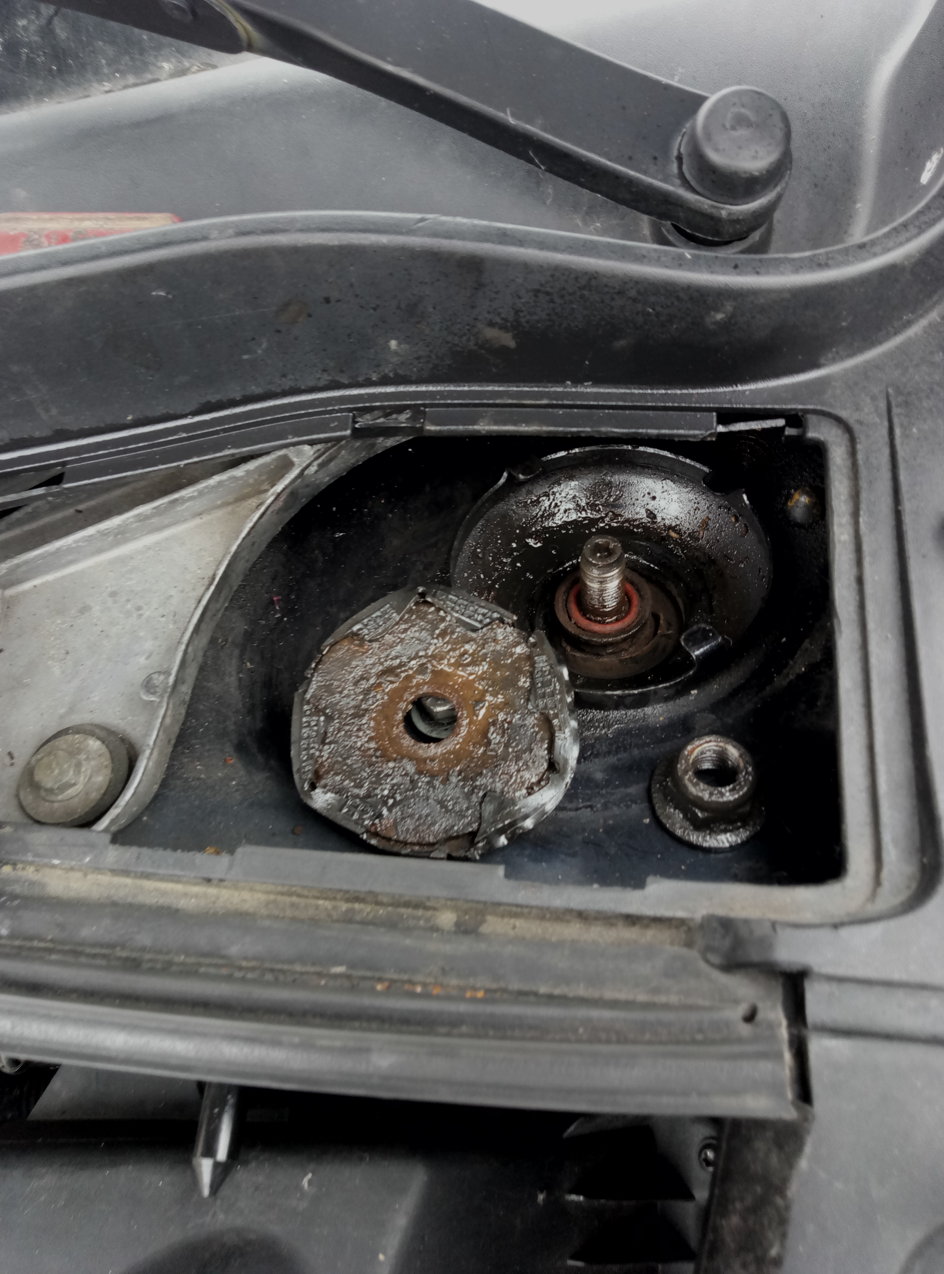 Bonjour depuis quelques jours j' avais un flop flop côté chauffeur donc je vérifie la biellette de la barre stabilisatrice rien après je décide de vérifier l amortisseur et la surprise (voir la photo)