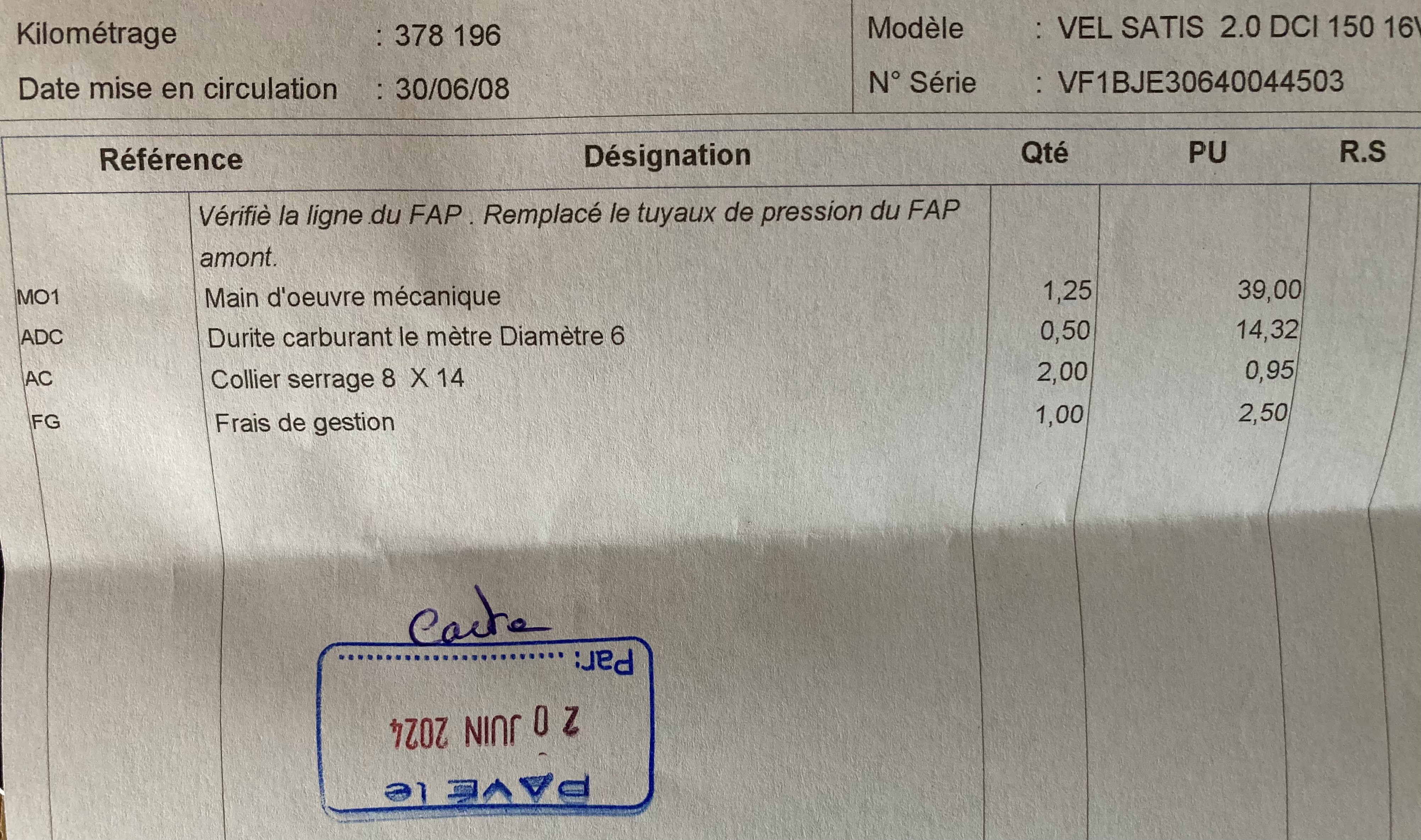 Je viens de faire changer une durite relié au FAP dont je n'ai pas la Ref Renault ( en forme de L en plus tordue ) d'origine et qui a fait 370000 kms. Symptôme : Controle anti-pollution sur le tableau de bord.