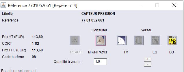 Après avoir renseigné le VIN, j'ai cliqué sur PR, puis dans la boîte de dialogue "17 Allumage- Injection" => injection diesel puis flèche de droite afficher la 2ème page pour la pièce qui m'intéresse.