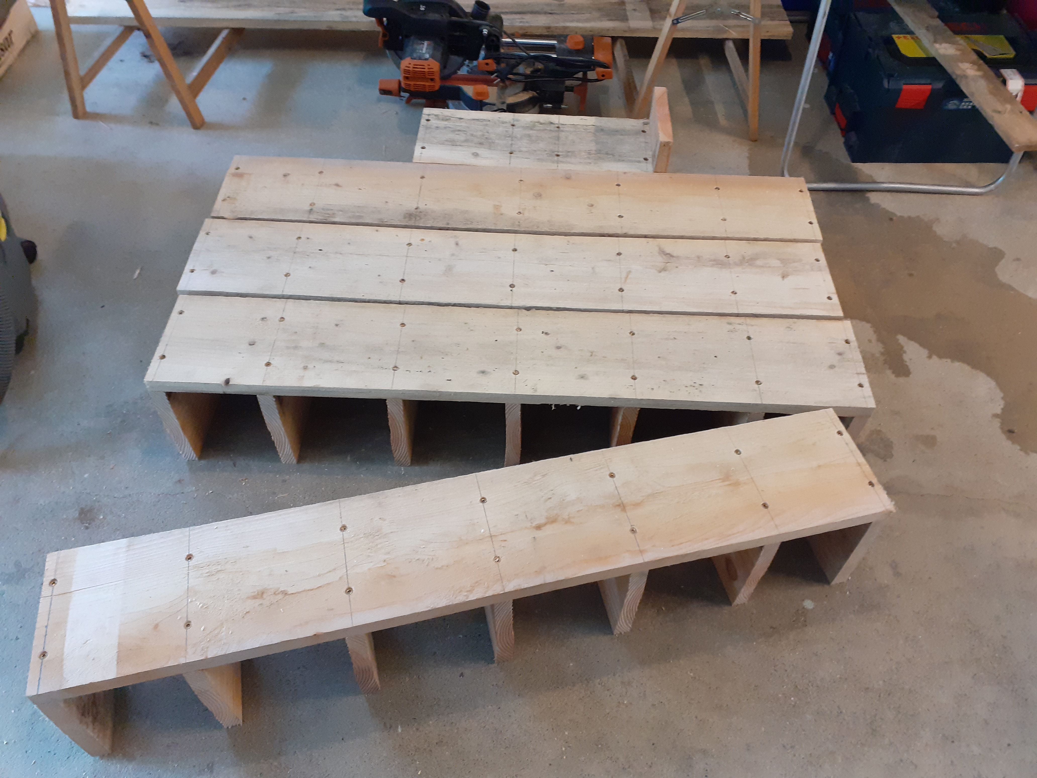 J'ai fait un peu la même chose avec des chutes de bastaings de mon premier chantier, mais ça demande un peu plus d'outillage, notamment pour couper en diagonale.