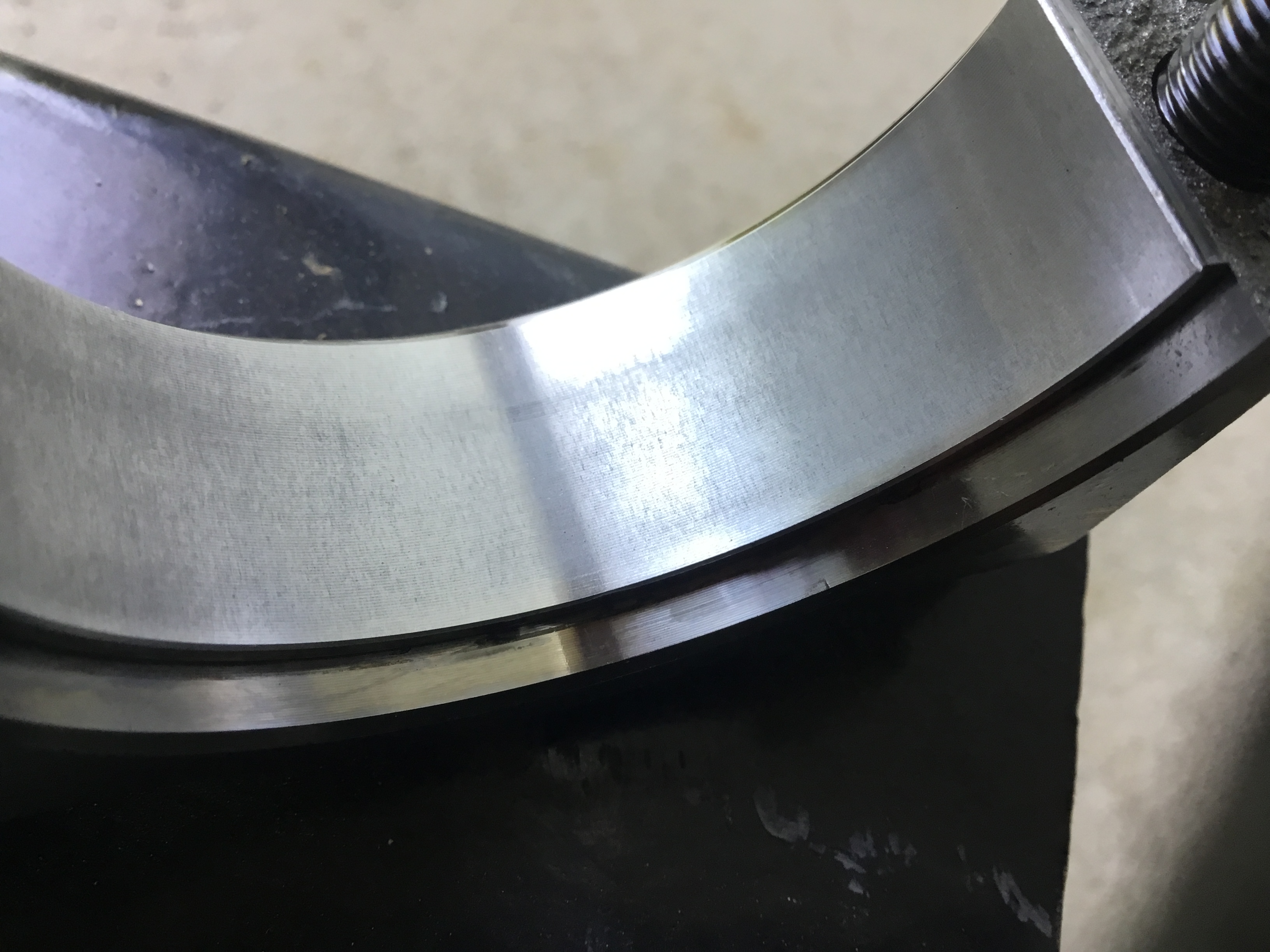 Ben pas tant que ca , la preuve en image , les coussinets de bielle coté chapeau sont nickel jusque la tout va bien , mais quand on va plus loin , ils sont déjà attaqués, même si c’est pas dramatique mais ca vaut le coup de les remplacer en prévention , les coussinets des paliers eux ne sont pas usés mais seront remplacés quand même ainsi que les demi flasques latéraux au centre du vilebrequin.