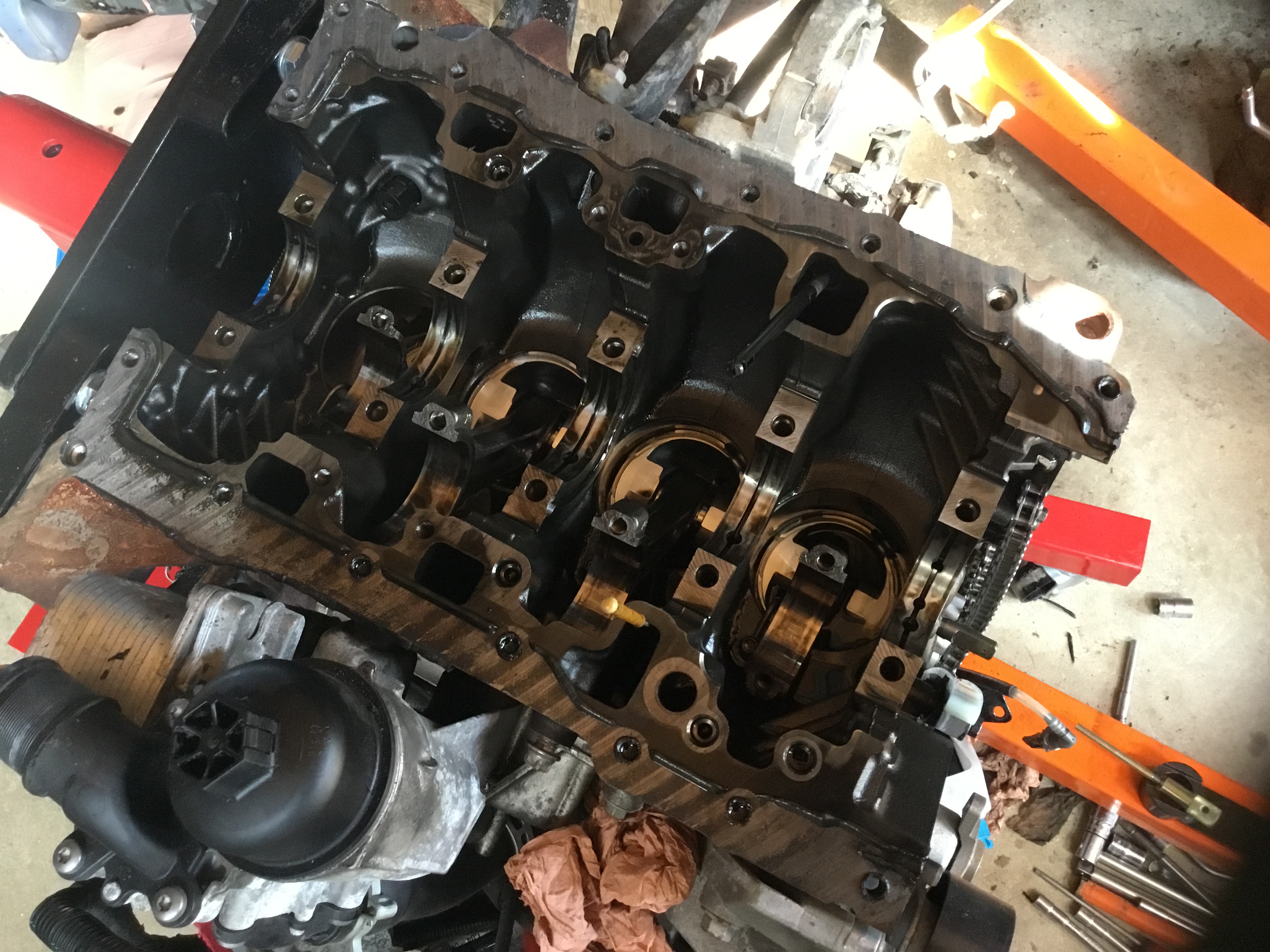 j’ai ouvert le carter moteur inférieur pour jeter un oeil aux coussinets , certains vont certainement se moquer mais bon c’est pas grave .... :grin: