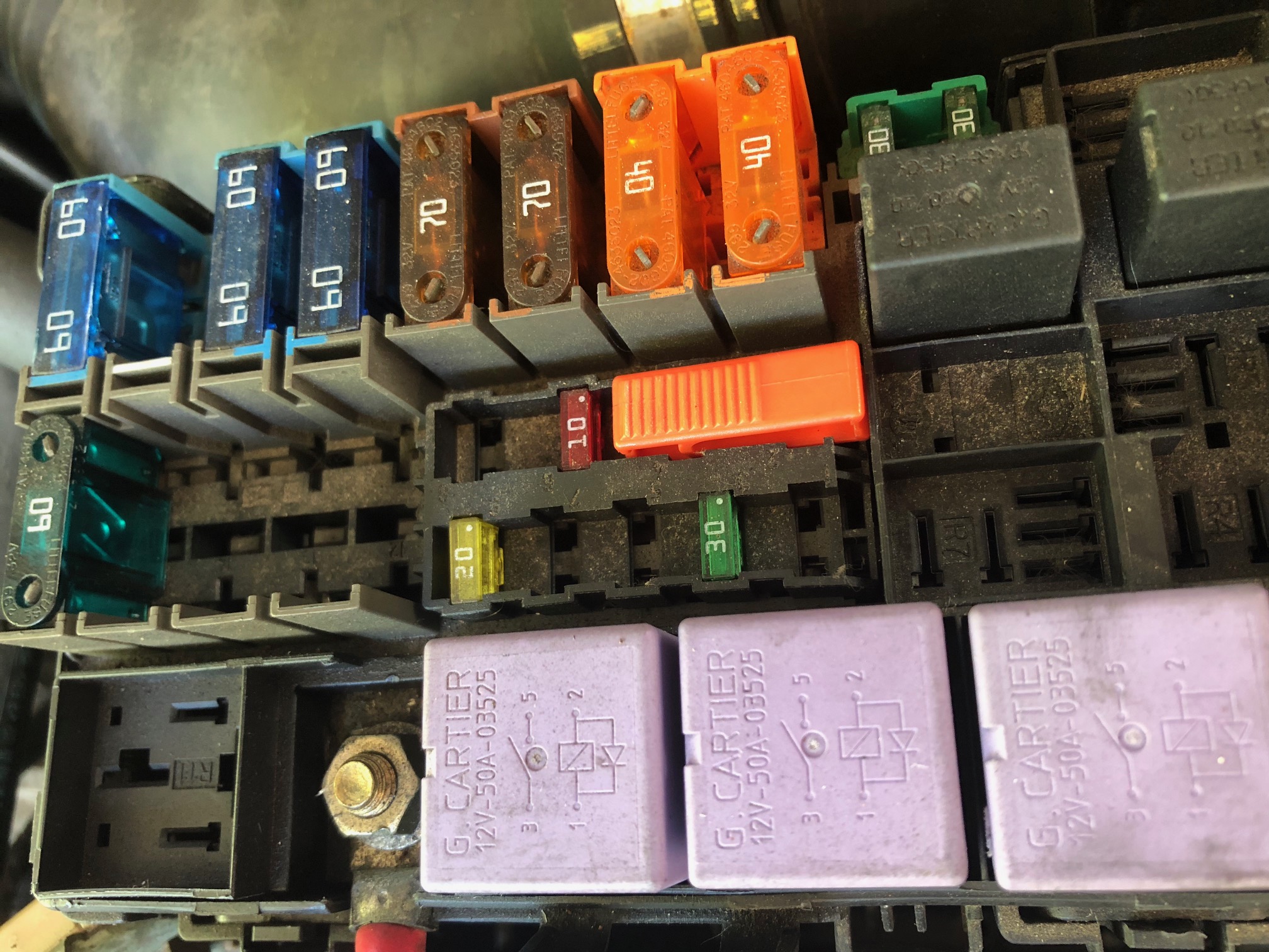 Ensuite j'ai l'impression que les trois petits fusibles 10 ; 20 et 30 donc je vais m'affairer à trouver ce genre de petits fusibles, je n'en ai pas vu de rechange dans la voiture) Y a-t-il un autre endroit où il faut vérifier les fusibles dans le cas de mon problème ?