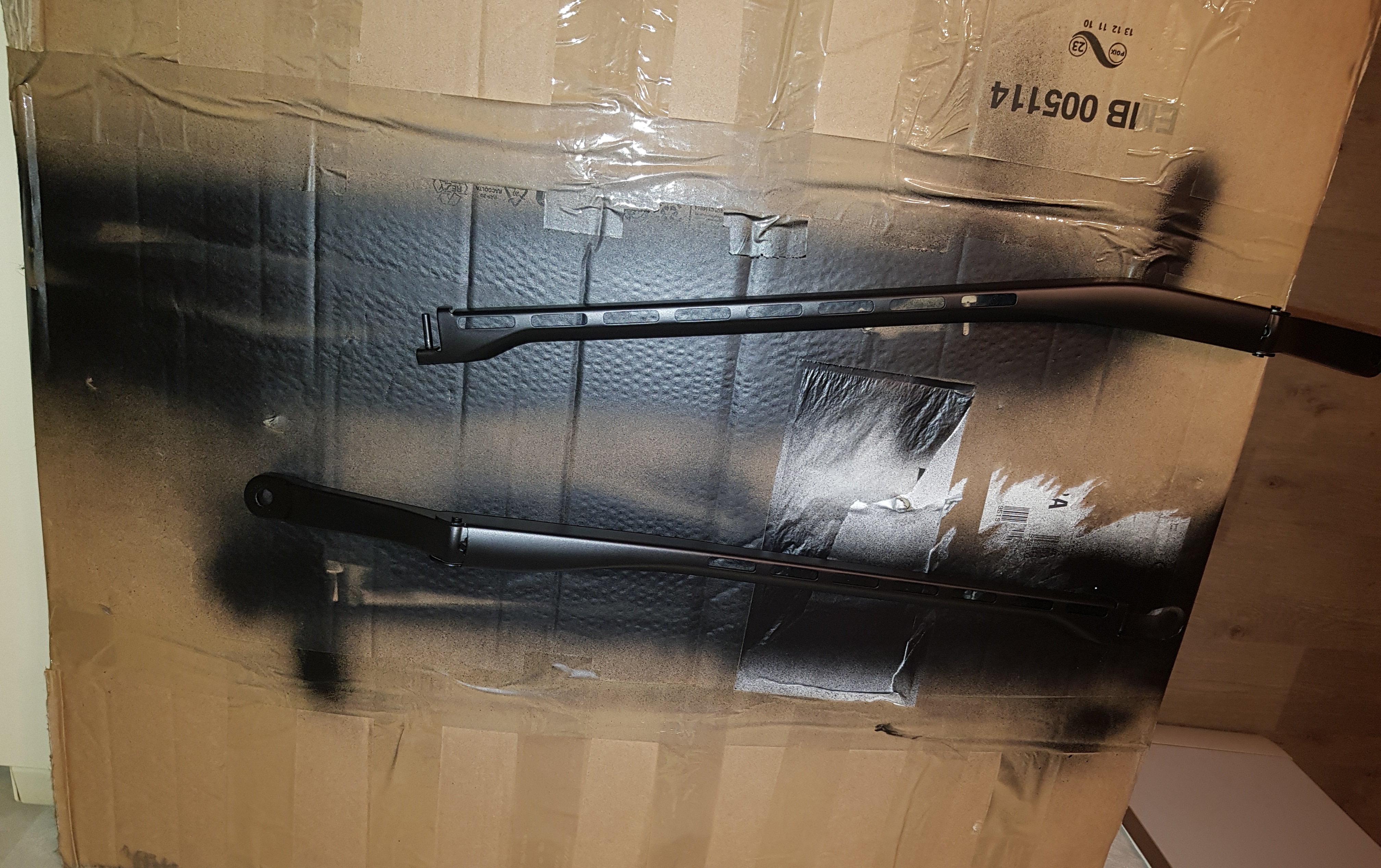 J'ai poncé au papier de 800, peint ensuite l'intérieur puis mis une couche d'accroche en extérieur et une bonne couche finale, avec une bombe de noir satiné.