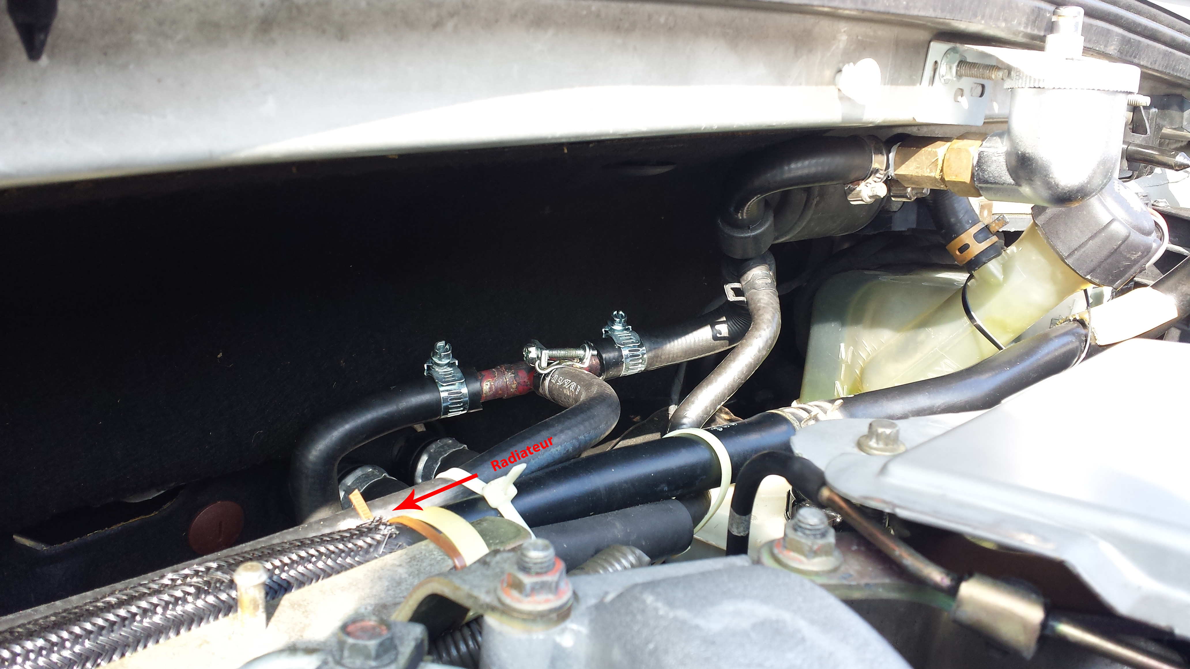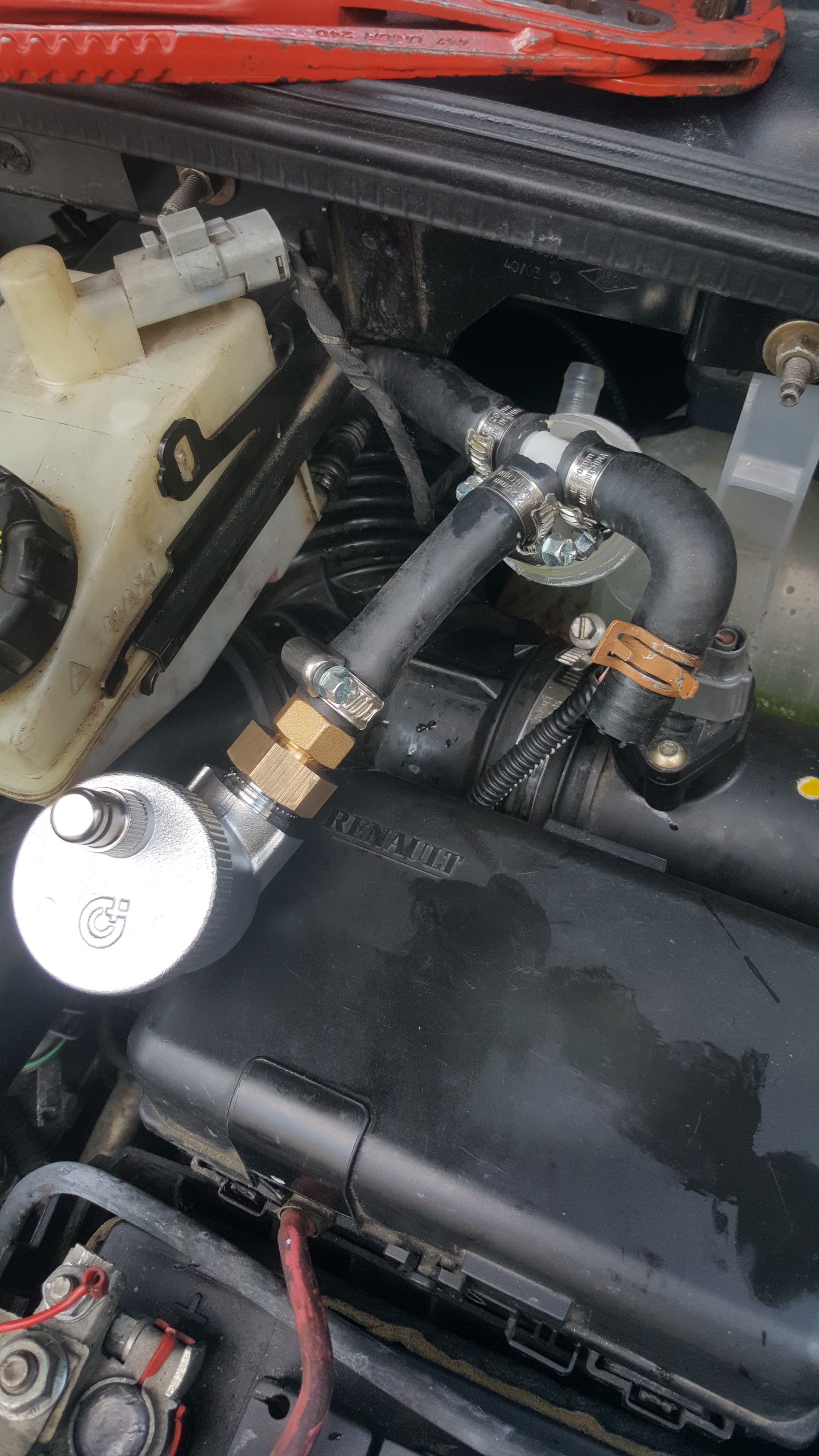 Bon, fais à la lampe frontale ce soir mais résultat très prometteur. Auparavant sur le même circuit, surchauffe et alerte puis avec le purgeur sur le retour au vase, surchauffe sans alerte et maintenant avec en plus durite en sortie de purge de radiateur jusqu’au retour au vase, légère augmentation de la température qui redescend très rapidement.